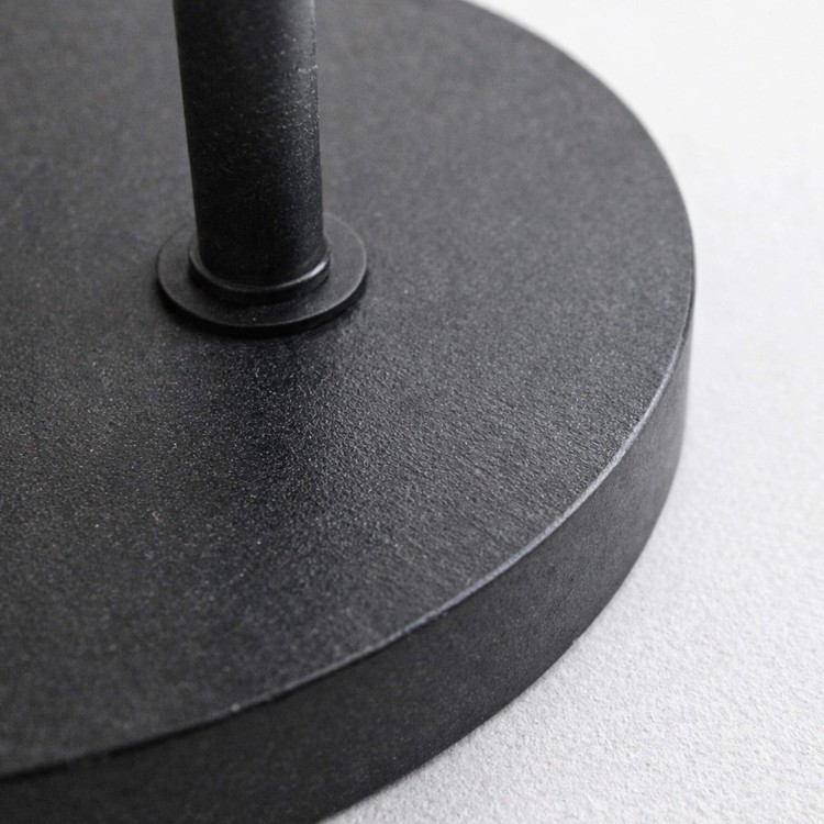 Der runde Fuß dieser Wohnzimmer-Stehlampe mit Glasschirmen und schwarzem Metall sorgt für Stabilität und Zurückhaltung, sodass sich die Struktur mühelos in unterschiedliche Einrichtungswelten einfügt, ob puristisch, im Industrial-Stil, urban oder wärmer. Dank ihrer ausgewogenen Proportionen und ihres Durchmessers von etwa 38 cm findet diese Stehlampe ganz selbstverständlich ihren Platz neben einem Sofa oder Sessel im Wohnzimmer und schafft einen Lichtpunkt, der zugleich praktisch und dekorativ ist.