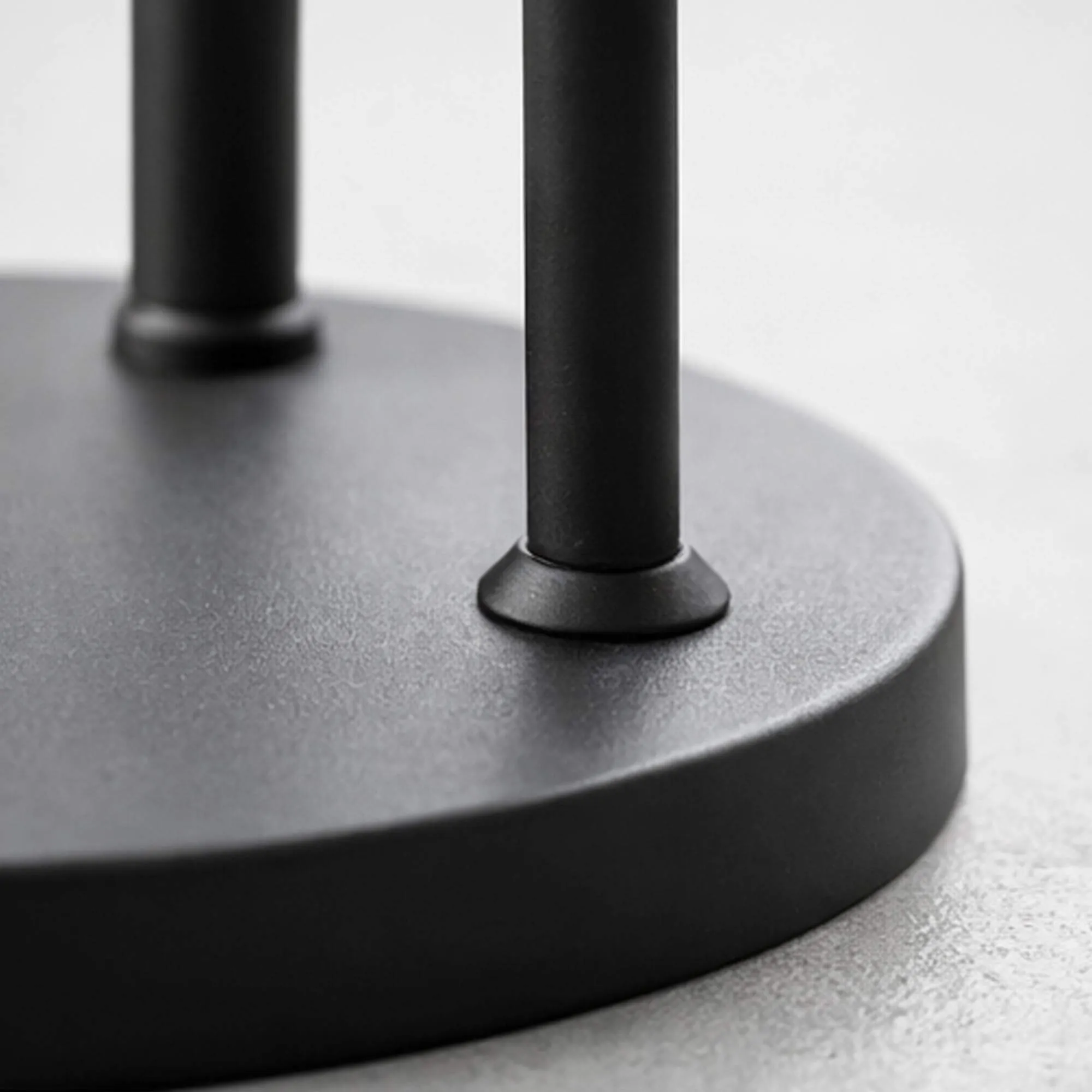 Bei der Entwicklung dieser Designer-Stehlampe aus schwarzem Metall mit Lampenschirmen aus bernsteinfarbenem Glas haben wir besonderes Augenmerk auf das Gleichgewicht zwischen Vertikalität und Transparenz gelegt, um selbst in kleineren Räumen einen Eindruck visueller Leichtigkeit zu bewahren. Diese Leuchte fügt sich ganz natürlich neben einen Sessel oder ein Sofa im Wohnzimmer ein, wo ihr Licht zu einem Moment der Entspannung beiträgt. Sie ist leicht zu montieren, begleitet den Alltag mit Selbstverständlichkeit und behauptet zugleich eine ästhetische Identität, die von einem neu interpretierten Industriestil inspiriert ist.
